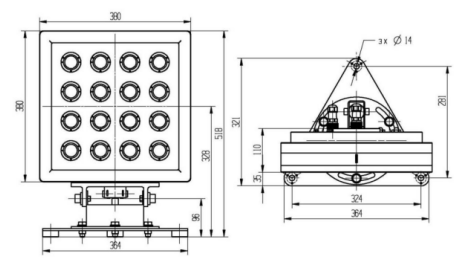 四/三孔均分于374毫米圆周底座,孔直径14毫米